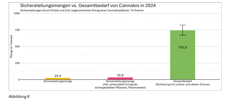 Auch für die Bedeutung des nun legalen Eigenanbaus kann daher keine seriöse Schätzung hinsichtlich der Menge abgegeben werden. Allerdings liegen ”erste Hinweise aus nichtrepräsentativen Umfragen vor, dass der private Eigenanbau als Ursprungsquelle mittlerweile für zahlreiche Konsumierende eine zentrale Rolle einnehmen könnte”.